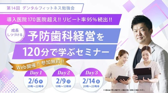 歯科医院の経営コンサルティングを行う株式会社ハーモニー(本社:香川県高松市 代表取締役 高橋翔太)が2/6,9,14に、自社で開発した予防歯科(定期健診)の仕組み「デンタルフィットネス」のオンラインセミナーを開催します。