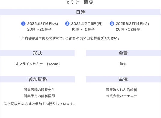 ・今回のセミナーは歯科医経営者のみ対象とさせて頂きます。