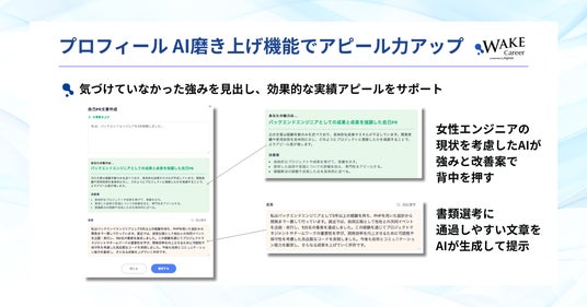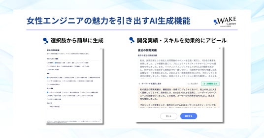 業界初!女性エンジニアの魅力を引き出す「プロフィールAI生成機能」をリリース 女性向けITキャリア転職サイト「WAKE Career 」