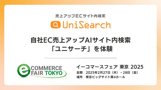 ユニバーサルナレッジ株式会社(東京都渋谷区:代表取締役 井上俊一)は、2025年2月27日(木)・28日(金)に東京ビッグサイトで開催されるイーコマースフェア 東京 2025に、AIサイト内検索ユニサーチを出展いたします。