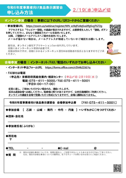 申込先:京都府府民総合案内・相談センター