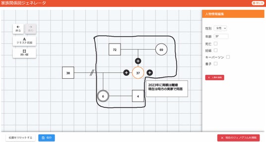 - 直感操作で作成ができるジェノグラム・エコマップ実装によりスムーズな帳票作成を実現