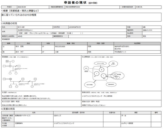 今回の相談支援事業への対応に伴い、国保連請求データの作成はもちろん、アセスメントやサービス等利用計画作成、家族関係図(ジェノグラム)の作成や社会関係図(エコマップ)の直感的な操作での作成、利用者様の帳票への電子署名、利用者様専用マイページへの代理受領通知書の開示等にも対応し、相談支援事業所を運営される皆様にとっても、より使いやすいシステムとなるよう対応しております。