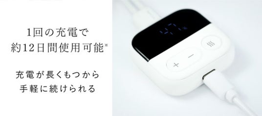 バッテリー性能にもこだわり、1回の充電で約12日間ご使用いただける長持ち設計を採用しました。(※1日10分間使用の場合)充電頻度が少なくて済むため、忙しい日々の中でも手間をかけずに続けられます。