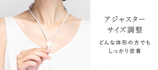さらに、ループにアジャスターを採用することで、サイズの調整が可能に。体型や首回りのサイズに関わらず、どなたにもぴったりとフィットし、しっかりと密着する設計になっています。