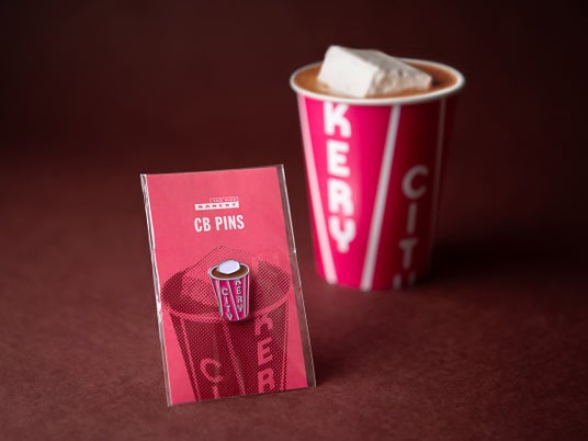 THE CITY BAKERYのオリジナルドリンクメニュー「ホットチョコレート」を手書きイラストでデザインした、大人気のピンバッジ。チョコレートフェスティバル中の期間限定販売です。トートバッグやポーチに付けてもキュートな一品です!