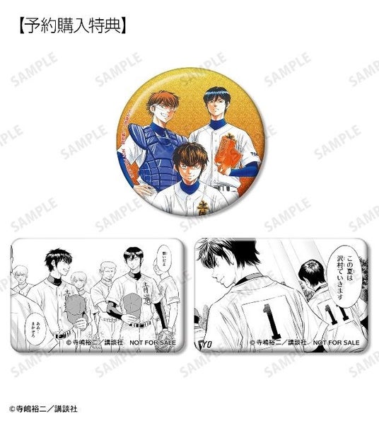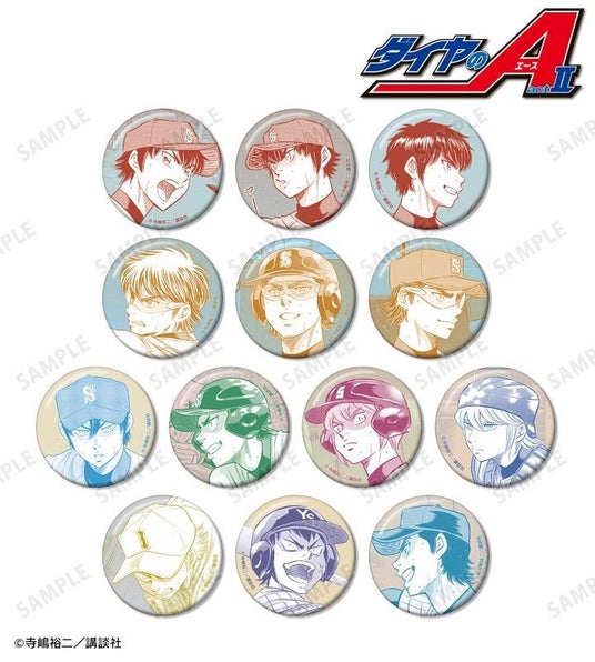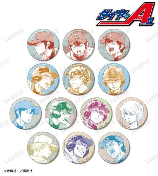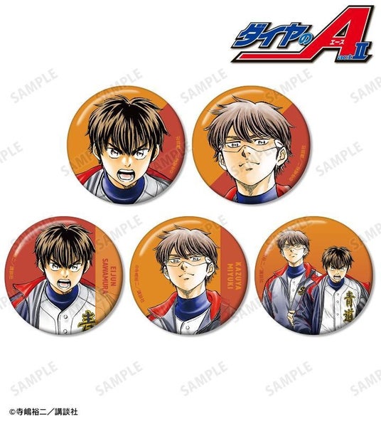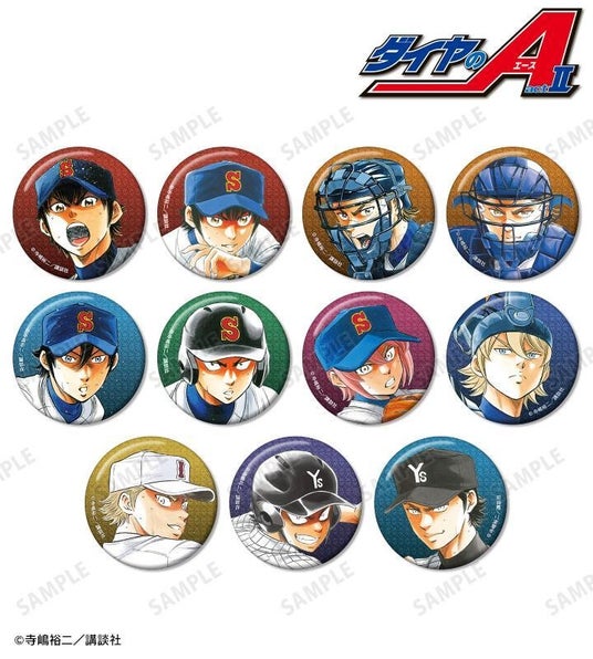 沢村栄純、御幸一也、降谷暁、倉持洋一、小湊春市、奥村光舟、成宮鳴、轟雷市、真田俊平の原作コマイラストを缶バッジに仕上げました。