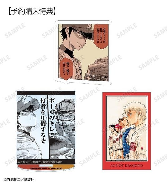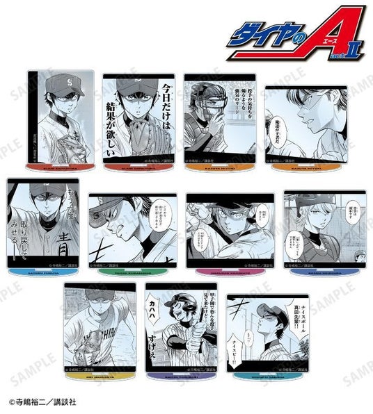 沢村栄純、御幸一也、降谷暁、倉持洋一、小湊春市、奥村光舟、成宮鳴、轟雷市、真田俊平の原作コマをアクリルスタンドに仕上げました。
