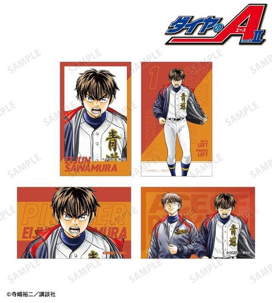 原作コマイラスト、沢村栄純、御幸一也、倉持洋一、小湊春市、成宮鳴のイラスト、カラーイラストをイラストカードに仕上げました。