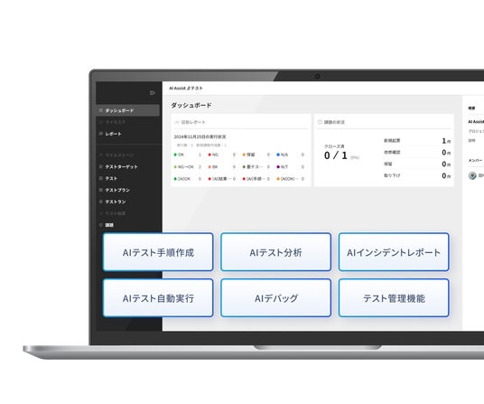 AIがテスト手順作成や自動実行から、インシデントレポート作成まで一貫してアシストします。