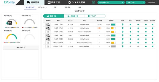 (※)EVolityが提供するEV車両の電池・充電状況のモニタリング、運用状況の記録と分析サービス