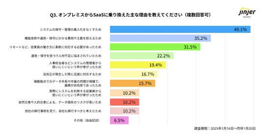 オンプレミスからSaaSへの移行理由で最も多いのは「システム保守・管理の属人化をなくすため」