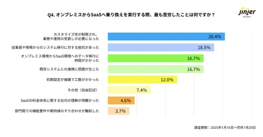 オンプレミスからの移行時、最も苦労したことは「カスタマイズ性が制限され、業務や運用の見直しが必要になったこと」