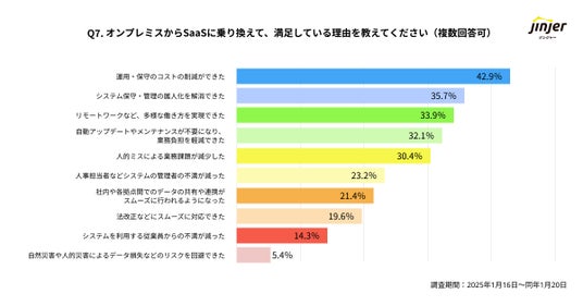 SaaS移行により、満足している理由は「運用・保守のコストの削減ができた」が最多