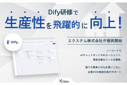 エクステム株式会社(所在地:東京都渋谷区、代表取締役:改野 由尚)は、ノーコードでAIチャットボットやAIエージェント、業務自動化ツールを作成できる「Dify実践研修」を新たに提供開始しました。専門知識を必要とせず、どなたでもAIを業務に取り入れるスキルを習得できるプログラムとして、企業のDX推進を強力に後押しします。