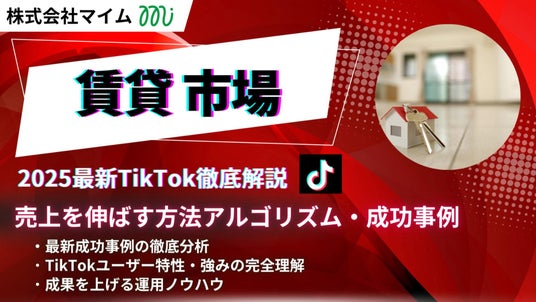 株式会社マイム(本社:東京都品川区、代表取締役社長:古川 湧一、以下「当社」)は、賃貸関連企業の皆様を対象に「2025年版TikTokトレンドレポート」を公開いたしました。本レポートは、TikTokを活用した最先端のプロモーション事例や成功パターン、そして結果に直結する戦略的な運用ノウハウを一冊に集約。
