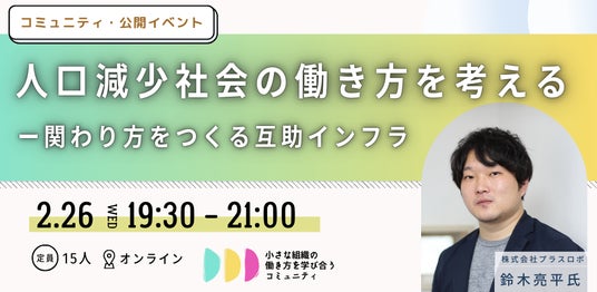 「人口減少社会の働き方を考えるー関わり方をつくる互助インフラ」小さな組織の働き方を学び合うコミュニティ・公開イベントの概要