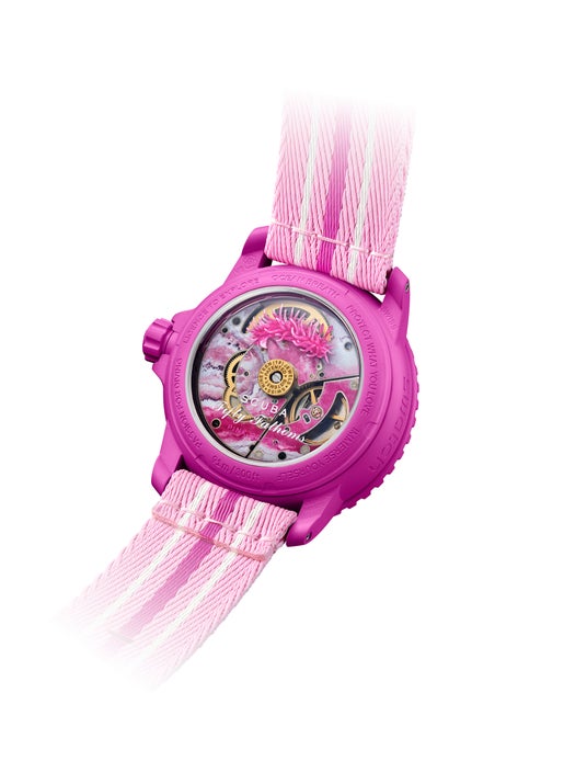 Swatch独自のSISTEM51ムーブメントには、ピンクがかった水とCeratodoris rosacea(セラトドーリス・ロザセア)という名のウミウシがデジタルプリントされています。PINK OCEANは世界中の厳選されたSwatchストアでお求めいただけます。
