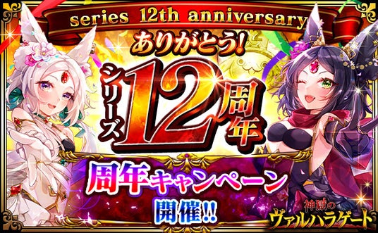 この度『神獄のヴァルハラゲート』は1月にシリーズ12周年を迎えることができました。これもひとえに今まで遊んでくださったユーザーの皆さまのおかげです。今後もゲームをお楽しみいただけるよう、新機能や施策の実装、改修を行ってまいります。これからの『神獄のヴァルハラゲート』もお楽しみに!引き続きの応援をよろしくお願いいたします!