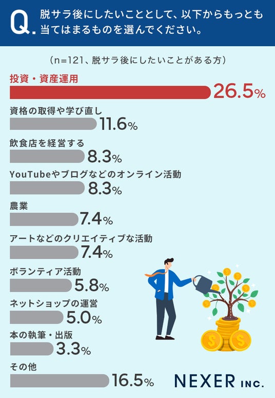 ■脱サラ後したいこと、26.5%で「投資・資産運用」がもっとも多い結果に