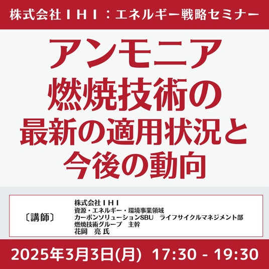 JPI(日本計画研究所)は、株式会社IHI 資源・エネルギー・環境事業領域 燃焼技術グループ 主幹 花岡 亮 氏を招聘し、アンモニア燃焼技術の最新の適用状況と今後の動向について詳説いただくセミナーを開催します。