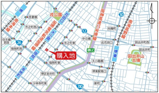 購入地は、阪堺電気軌道阪堺線「宿院」駅から徒歩約3分・南海電気鉄道南海本線「堺」駅から徒歩約10分で移動範囲が広がる2駅利用可能です。