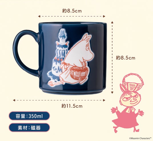「ムーミンショップ パティスリー」らしい、深いネイビーが大人可愛いオリジナルデザインのマグカップです。ムーミンママやリトルミイも、お茶会のために一生懸命準備中なのかも!オシャレなボックス入りなので、ムーミン好きの友達へのプレゼントにも、自分用におうちやオフィスで、ほっと一息つくのにもぴったりです。