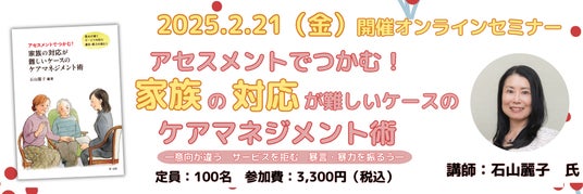 法律関連出版物、各種データベースを提供する第一法規株式会社(所在地:東京都港区、代表取締役社長:田中 英弥)は、無料オンラインセミナー「アセスメントでつかむ! 家族の対応が難しいケースのケアマネジメント術―意向が違う サービスを拒む 暴言・暴力を振るう―」を、2025年2月21日(金)に開催します。