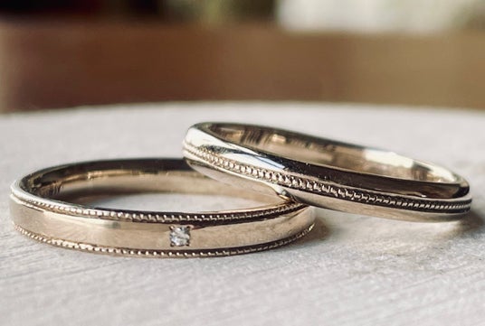 ミルグレインはラテン語で「千の粒」を意味し、小さな丸い粒を連続して打刻する技法です。この装飾は指輪に立体感を与え、アンティークな雰囲気を醸し出します。ミルグレインの粒が途切れることなく連なる様子は、「二人の絆が途切れることなく続く」というメッセージを込めることができます。このデザインは、永遠の愛や幸せを願う象徴として扱われています。