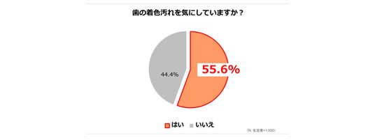 - 【歯の着色汚れへの意識】生活者の約半数以上(55.6%)が着色汚れを気にしていることが判明