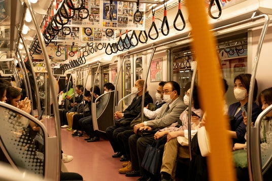 1枚目の画像: Hugo Sykes https://www.pexels.com/photo/people-are-sitting-on-a-subway-train-with-masks-on-27666750/