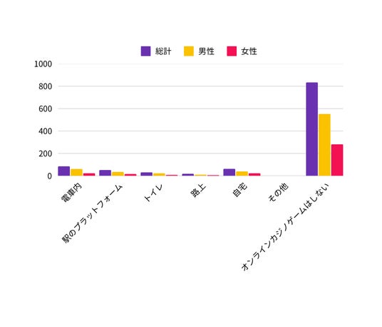 オンラインカジノゲームは広く普及しているというよりも、一部の通勤・通学者にのみ利用されているようです。このデータは、場所を選ばない現代のゲームの利便性を反映していると同時に、これらのゲームが一部の人々にとって時折の楽しみとして機能していることを示しています。