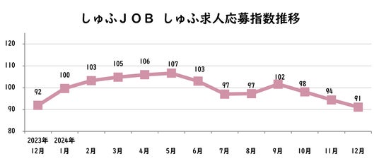 応募指数は前月比-3、前年同月比-1の91。