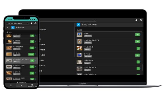 リネン庫などに保管する備品やアメニティの在庫数を管理するHoteKan備品