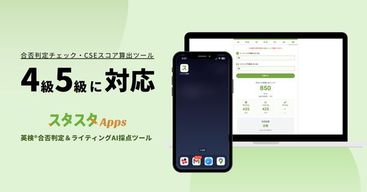 スタディスタジオ株式会社(本社:東京都渋谷区、代表取締役:鈴木孝一、以下「当社」)は、英検(R)受験生向けに提供しているウェブサービス「スタスタApps」において、英検(R)4級・5級の合否判定ツール(CSEスコア予測機能)を2025年1月28日に公開いたします。