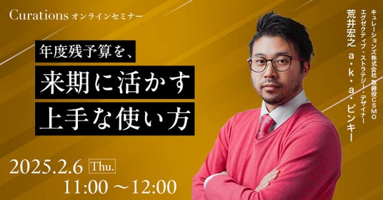 顧客企業のビジネス変革を成功に導くキュレーションズ株式会社(本社:東京都渋谷区、代表取締役社長:根本隆之、以下当社)は、『年度残予算を、来期に活かす上手な使い方』を2025年2月6日(木)に開催いたします