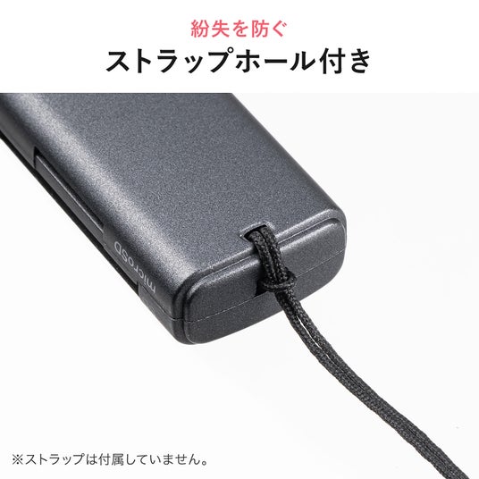 ストラップホール付きで、紛失の対策をすることができます。※ストラップは付属しておりません。