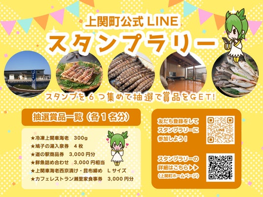 山口県上関町では、町の情報発信や観光PR、ふるさと納税診断などのメニューを実装した町公式LINEを、2024年11月1日にリリースしました。この度、町内各施設でスタンプを6つ集めると上関町の特産品等が当たるスタンプラリーを、2025年2月1日(土)から3月9日(日)まで開催します。本スタンプラリーは、観光PRの一環として実施するもので、町外在住の方を対象としています。