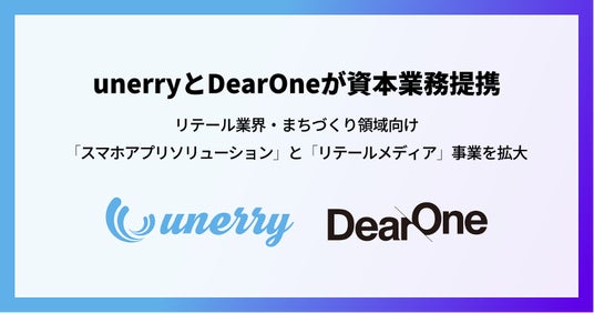 リアル行動データプラットフォーム「Beacon Bank」を運営する株式会社unerry(本社:東京都港区虎ノ門、代表取締役社長CEO:内山 英俊、以下、unerry)と株式会社NTTドコモのマーケティング分野における新規事業型子会社である株式会社DearOne(本社:東京都港区、代表取締役:河野 恭久、以下:DearOne)は、相互のリテール業界・まちづくり領域に向けた「スマホアプリソリューション事業」および「リテールメディア事業」の拡大を図ることを目的として資本業務提携を締結いたしました。