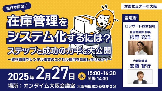クラウド型在庫管理システムのリーディングカンパニーであるロジザード株式会社(東京都中央区、代表取締役社長:金澤 茂則、以下:ロジザード)は、2月27日(木)に対面セミナー『西日本限定!在庫管理をシステム化するには?ステップと成功のカギを大公開』の開催を決定、申し込み受付を開始しましたのでお知らせいたします。