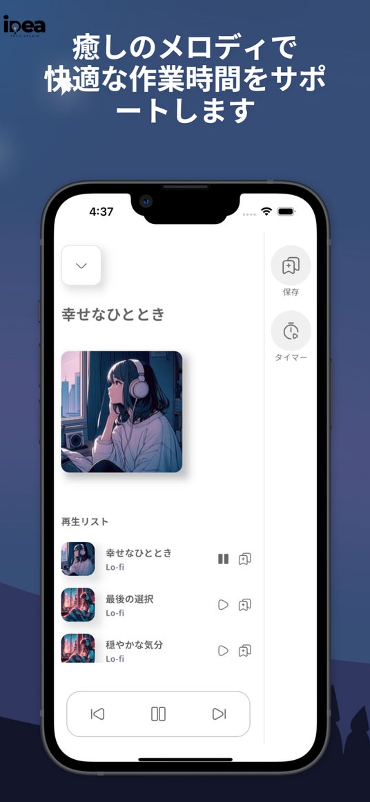 Lo-Fiやジャズといった作業や勉強に最適な音楽を厳選。心地よいメロディが集中を妨げることなく作業効率をアップします。カテゴリ別に整理されたサウンドを簡単に選べるので、自分にぴったりのBGMがすぐに見つかります。