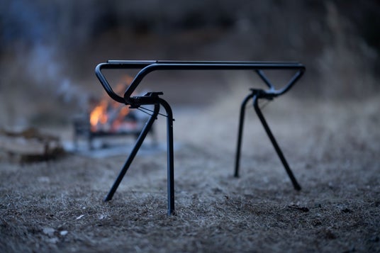 見た目の美しさだけでなく、素材選びや機能面も追求し、軽量でありながら強度の高いアルミフレームを採用。耐荷重は約20kgあり、軽量性と耐久性を兼ね備えています。フレームはショックコードで繋がっているので設営・撤収の手間と時間を大幅にカットします。天板のステンレスパネルはサビに強く耐熱性があります。フレームの角度、高さもボタンを押すだけと、シンプルで誰でも扱いやすい設計になっています。