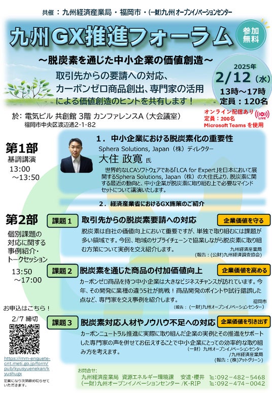 このたび福岡市では、九州経済産業局及び九州オープンイノベーションセンターと共同で、『九州GX推進フォーラム』を開催します。