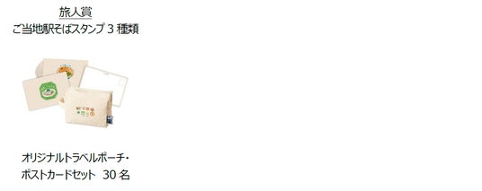 ・取得した「ご当地駅そばスタンプ」の種類の数に応じて以下の賞に応募ができます。