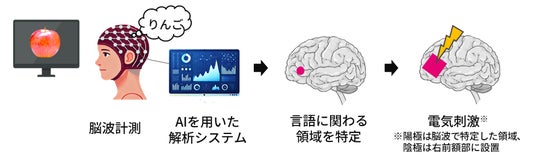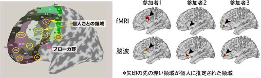 頭皮から微弱な電気刺激を与える経頭蓋直流電気刺激法(tDCS)は、言語に関わる脳領域として知られるブローカ野に対して行うと言語機能が改善する可能性が報告されており、失語症の治療手段として注目されています。しかし、呼称などの言語課題中に活動する脳領域は個人差が大きいため、近年では機能的磁気共鳴画像(fMRI)を用いて、個人ごとに刺激領域をカスタマイズする方法が提案されています。しかしfMRIを用いた活動領域の特定には、設備設置などの関係で汎用性が低いという課題がありました。