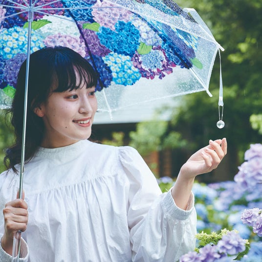TOP10に「ミズクラゲの傘」「紫陽花の傘」「ステンドグラスの傘」とスタンダードタイプのデザイン傘が3種も入っています。折りたたみ傘が主流の海外のお客さまからも人気を集める理由には、発想のユニークさ、デザイン性に加え、画映えも挙げられます。SNSでは海外のお客さまが「紫陽花の傘」を持って日本各地の紫陽花寺を訪れて写真投稿される様子も多くみられます。