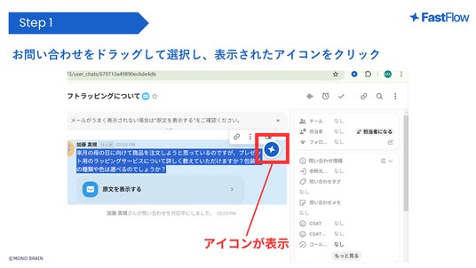 MONO BRAINは「業務フローを圧倒的に強く、成長を支えるCS部門を創る」をミッションに掲げ、AIテクノロジーを活用した事業を展開しています。ECのメール・チャット対応にかかる時間を最大1/3に短縮するAIブラウザ拡張機能「FastFlow Assist」を開発・提供することで、人とAIの共創を追求。複数の企業で導入実績を重ね、最大64%の業務効率化を実現しています。