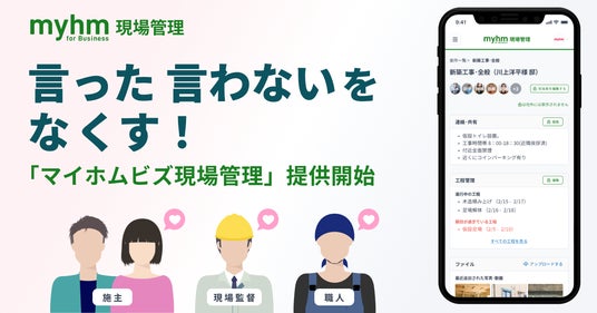 株式会社マイホム(本社:東京都港区、代表取締役:乃村一政‧金箱遼)は、家づくりの現場で起こりがちなトラブルを手間なく減らす新サービス「マイホムビズ現場管理」の提供を開始しました。これまでの家づくりでは、施工中に発生する施主からの要望や設計・現場での修正が、施主や関係者全員に十分に共有されず、トラブルの原因となることが課題でした。「マイホムビズ現場管理」は、1回の操作で施主を含むすべての関係者に最新情報を同時共有。これにより、情報共有漏れや「言った言わない」のトラブルを減らし、家づくりをスムーズかつ安心して進めることができます。