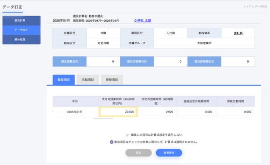 本機能実装では、給与を支給した後に勤怠データの修正が必要になった場合、「ジンジャー給与」の画面上から、そのデータを修正・編集し、更新後の勤怠データを基に支給額や控除額を再計算できるようになりました。