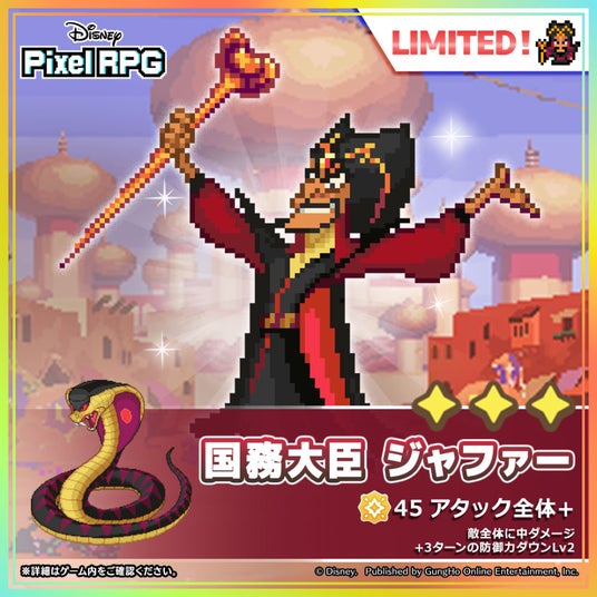 『アラジン』より「ジャファー」が初登場となりますので、ぜひ仲間にして、ゲームをお楽しみください。